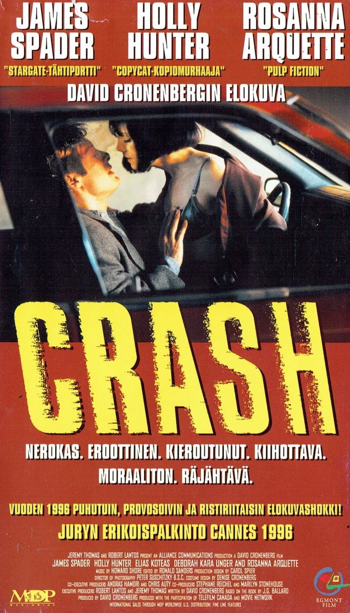 Nerokas. Eroottinen. Kieroutunut. Kiihottava. Moraaliton. Räjähtävä. "Crash" on vuoden 1996 puhutuin elokuvatapaus. Pääosissa loistavat JAMES SPADER ("Stargate -tähtiportti", "Wolf", "Seksiä, valheita ja videonauhaa"), HOLLY HUNTER ("Copycat -kopiomurhaaja") sekä ROSANNA ARQUETTE ("Pulp Fiction") panevat kaikkensa peliin.