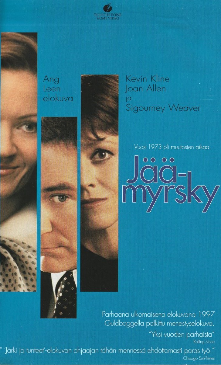 Elokuvassa on KEVIN KLINEN, SIGOURNEY WEAVERIN ja JOAN ALLENIN tähdittämä huippunäyttelijäkaarti. Elokuva perustuu RICK MOODYN romaaniin "Jäämyrsky", joka kuvaa voimakkaasti ja dramaattisesti 70-luvun moraalia ja sovinnaisia tapoja vastaan kapinoivien elämää. Elokuvan on ohjannut ANG LEE.