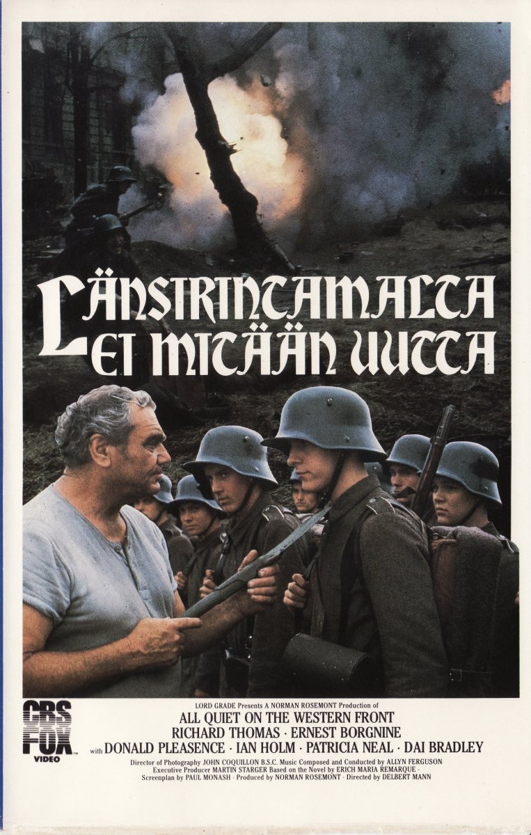 Erich Maria Remarquen klassikko ensimmäisestä maailmansodasta on maailmankirjallisuuden tunnetuin sotaromaani. Jo 1930-luvulla tehtiin ensimmäinen elokuvafilmatisointi – tämä on tuoreempaa tuotantoa 1970-luvulta.
