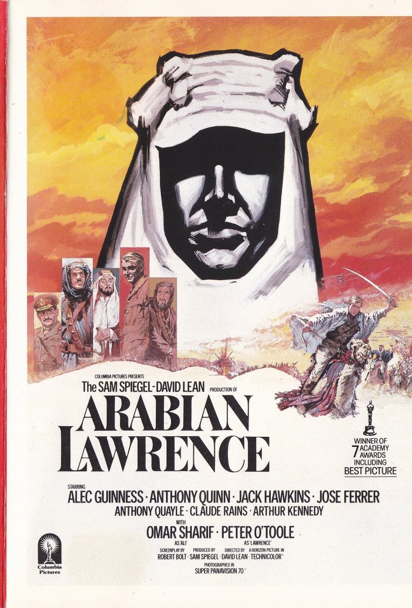 Yksi suurimmista seikkailuelokuvista. Ohjaajana David Lean, mies "Kwai-joen Sillan" takana. Arabian Lawrence on palkittu seitsemällä Oscarilla. Filmissä mukana sellaisia tähtiä kuin Peter O'Toole, Alec Quinn, Jose Ferrer ja Omar Sharif.